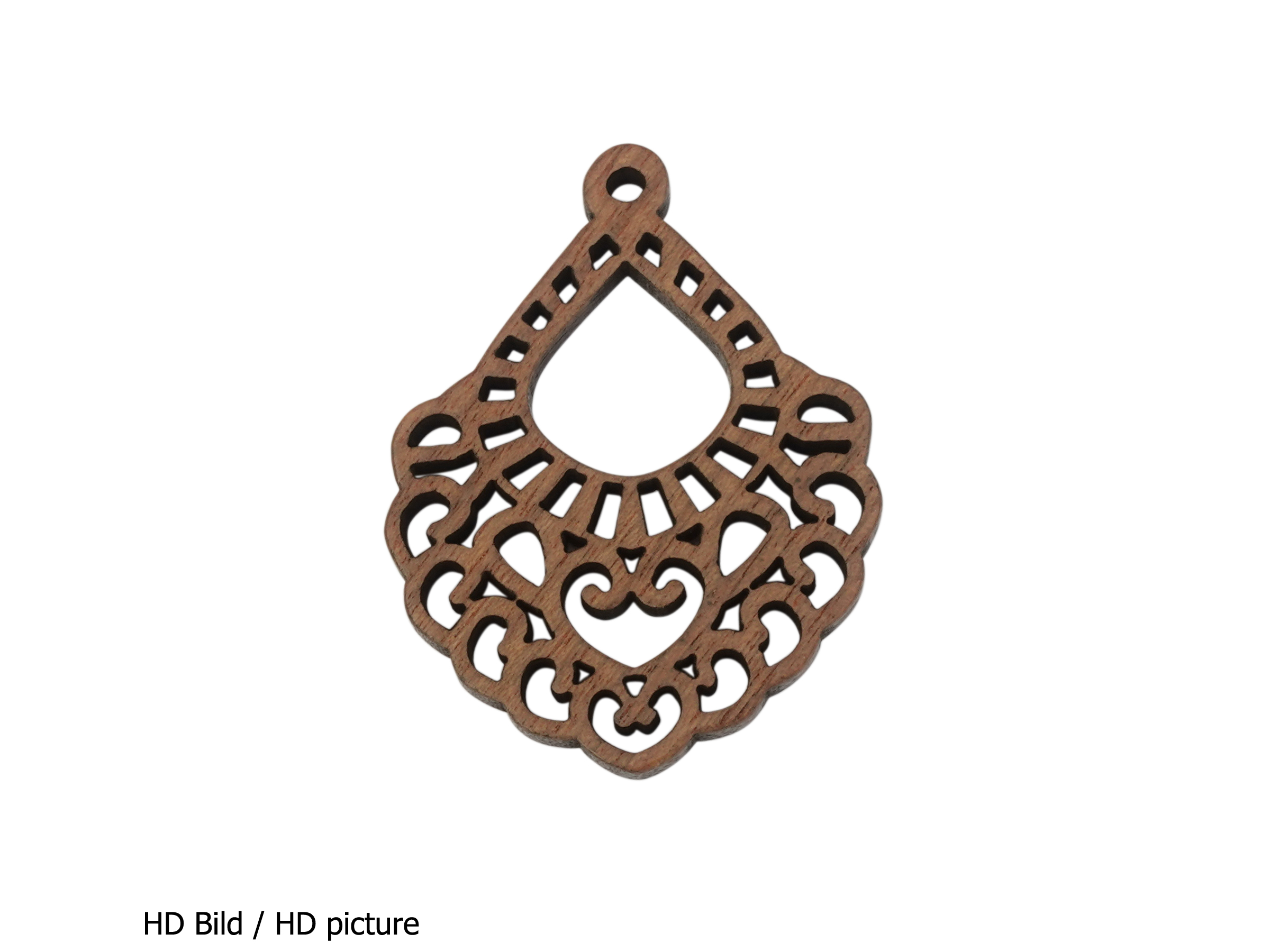 Edel verarbeiteter, ornamentaler Holzanhänger aus Walnussholz zum kreieren von individuellen Holzohrringen und erlesenem Holzschmuck