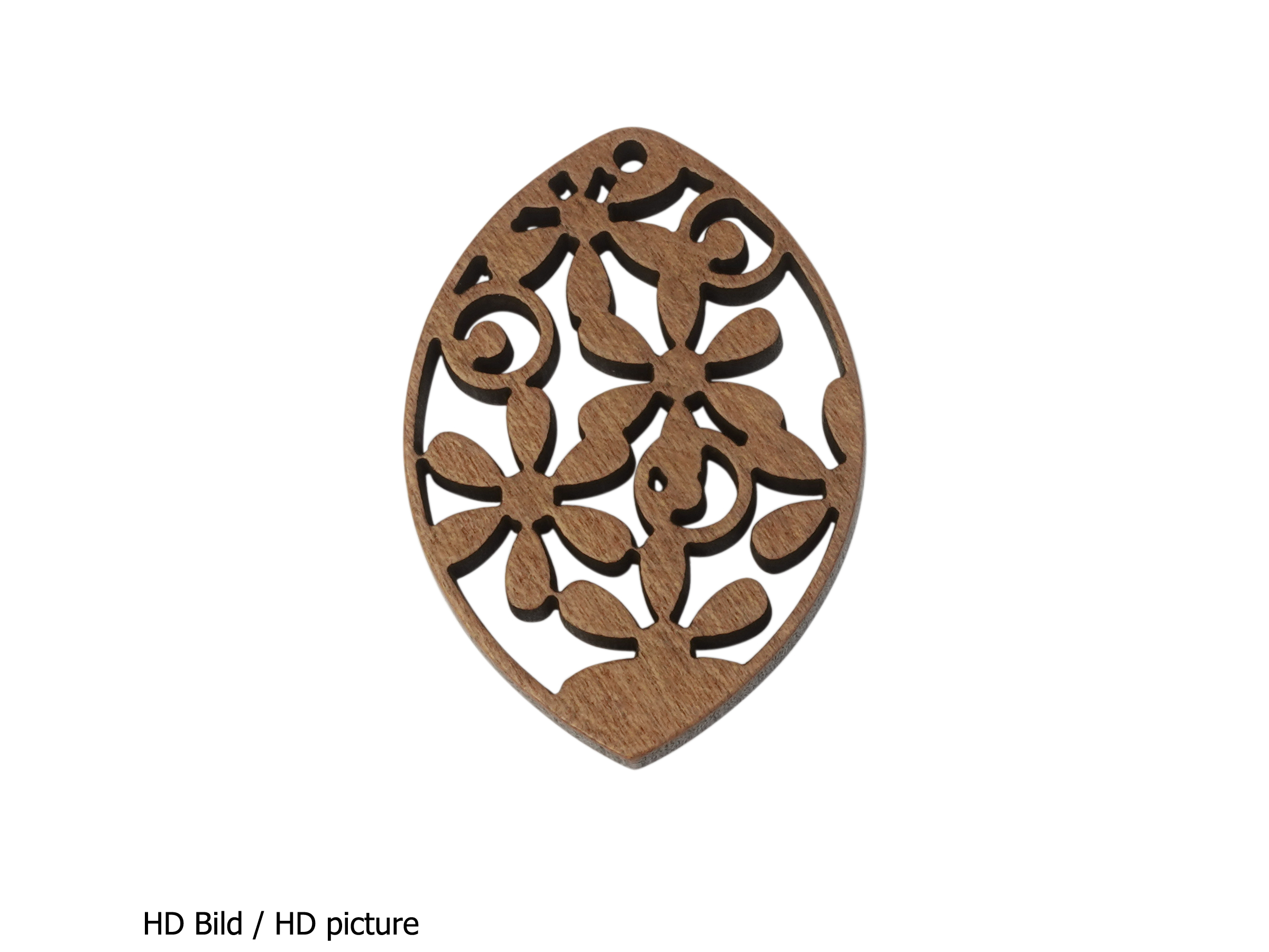 Edel verarbeiteter, ornamentaler Holzanhänger aus Walnussholz zum kreieren von individuellen Holzohrringen und erlesenem Holzschmuck