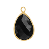 Glasanhänger mit Metallfassung, Tropfen ~14x19mm, silber, schwarz