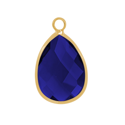 Glasanhänger mit Metallfassung, Tropfen ~14x19mm, silber, dunkelblau