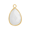 Glasanhänger mit Metallfassung, Tropfen ~14x19mm, silber, opalweiß