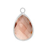 Glasanhänger mit Metallfassung, Tropfen ~14x19mm, silber, pfirsich